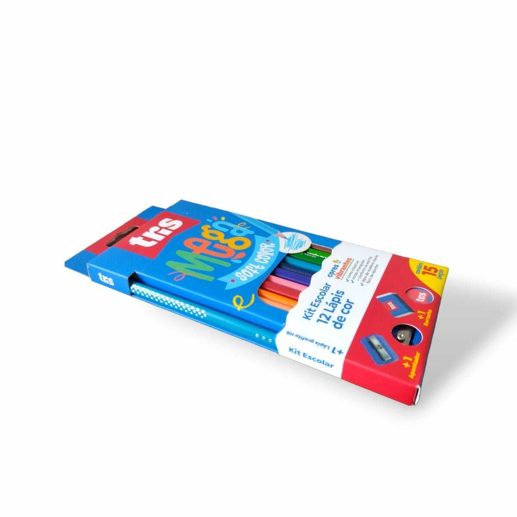 MEGA divertido! MEGA colorido! A linha de colorir MEGA da TRIS é uma alternativa de qualidade para potencializar a criatividade dos seus usuários. Cores vibrantes! Lápis de madeira, de traço super macio e corpo triangular. Os lápis possuem o nome das cores e mina 2.9mm. Acompanha lápis grafite de traço HB, apontador sem depósito e borracha livre de PVC! Conjunto com 12 cores incríveis.